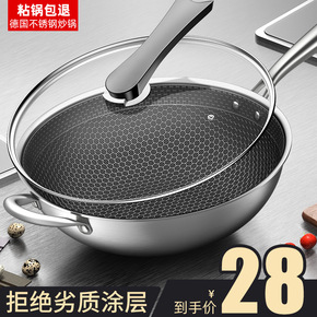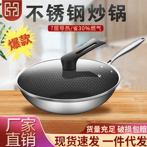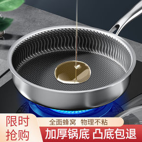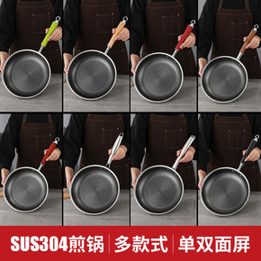 304不锈钢煎锅三层钢双面蜂窝不粘炒菜锅煎蛋牛排家...