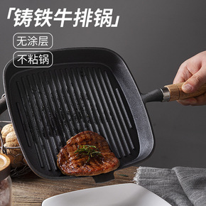 铸铁牛排煎锅无涂层小煎牛排专用锅方形条纹电磁炉平底...
