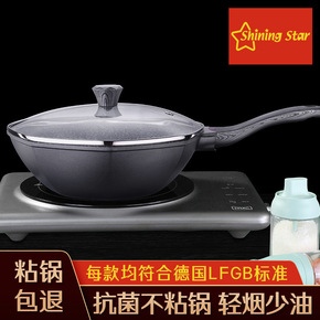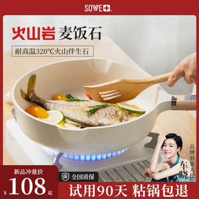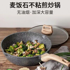不粘锅火山岩麦饭石炒锅平底锅家用电磁炉燃气灶专用炒...