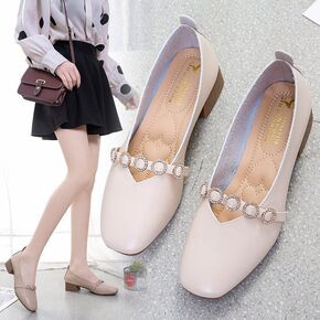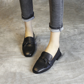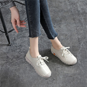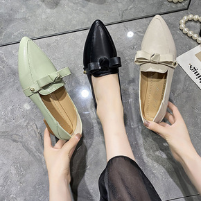 2021春夏新款头层牛皮蝴蝶结低跟舒适百搭真皮单鞋...