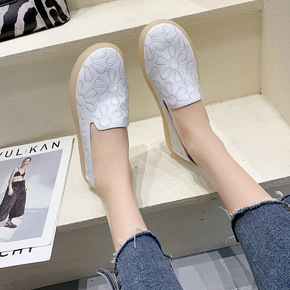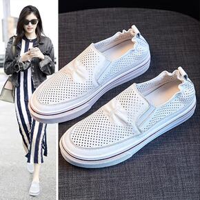 2020年夏季新款透气小白鞋镂空女鞋一脚蹬真皮休闲...