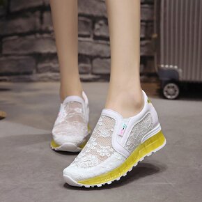 【单网可选】夏季镂空小白鞋女内一脚蹬网面坡跟单鞋休...