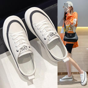 厂家2021夏季新款牛皮小白鞋 平底休闲镂空透气懒...