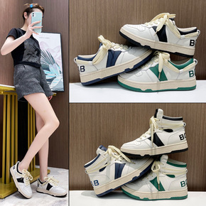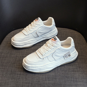 2021秋季新款女鞋圆头休闲高帮纯色小白鞋厚底高帮...