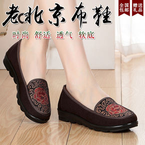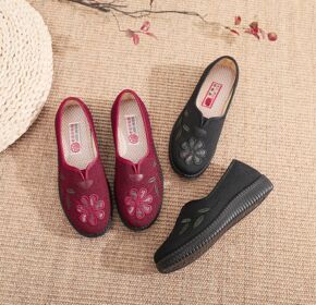 跨境直供外贸大码女休闲单鞋平跟圆头松紧懒人鞋民族花...