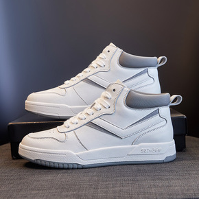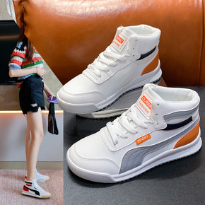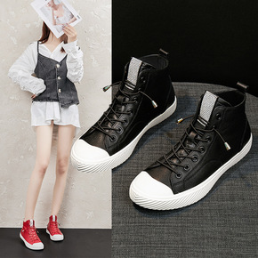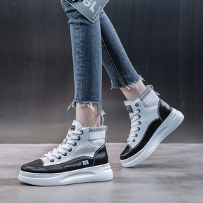 头层牛皮高帮小白鞋女2021春季新款韩版百搭加绒平...