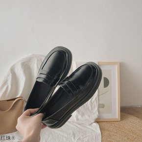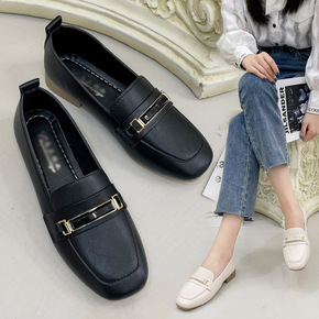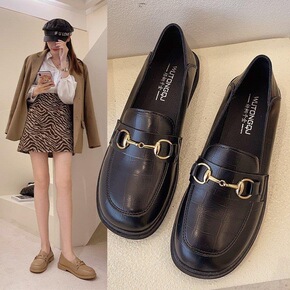 英伦风小皮鞋女2021新款平底韩版乐福鞋软皮豆豆鞋...
