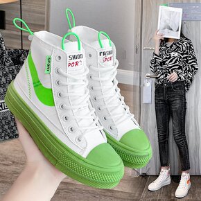 糖果色高帮单鞋女2021秋季新款韩版学生系带板鞋时...