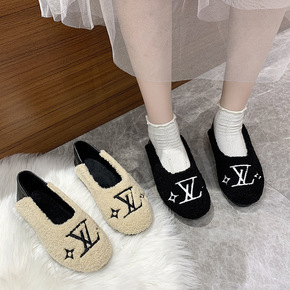 羊羔毛豆豆鞋2021新款刺绣毛毛鞋女冬外穿平底一脚...