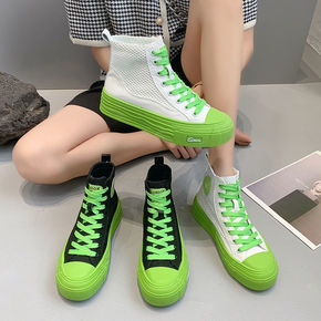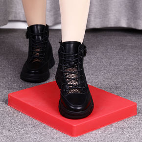 高帮鞋女夏季厚底网纱透气薄款镂空短靴春秋休闲板鞋运...