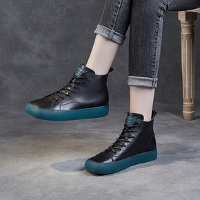 港风运动鞋女2022新款春季百搭板鞋休闲短靴潮高帮...