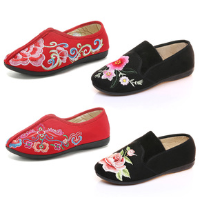 二棉鞋平底软底注塑乐福鞋夹棉加绒妈妈鞋中老年绣花布...