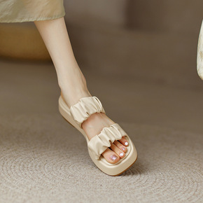 网红松糕厚底拖鞋女外穿2022夏季新款时尚褶皱休闲...