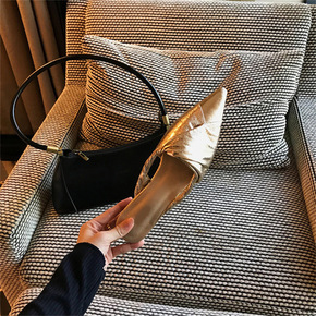 2022年新款洋气尖头金色浅口平底穆勒鞋女包头半拖...