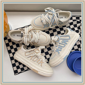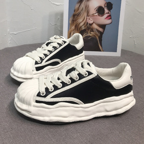 2022春季新款厚底丑萌马蹄鞋ins休闲大头帆布鞋...