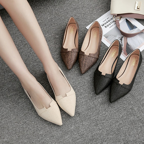 2021春秋新款尖头单鞋女平底韩版学生浅口瓢鞋软底...