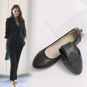 工作鞋女黑色2020新款百搭平底鞋尖头浅口单鞋礼仪...