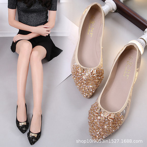 奢华彩色水钻尖头平底鞋 水晶花单鞋 外贸大码单鞋平...