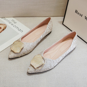 鞋子女2021豆豆鞋女新款平底瓢鞋晚晚风尖头单鞋女...