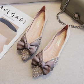 尖头平底鞋女2021年新款软底豆豆鞋夏蝴蝶结单鞋瓢...