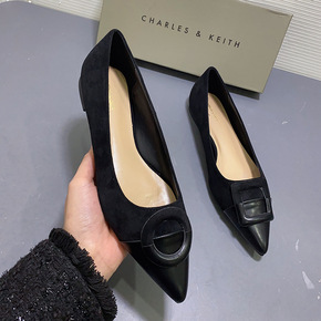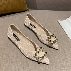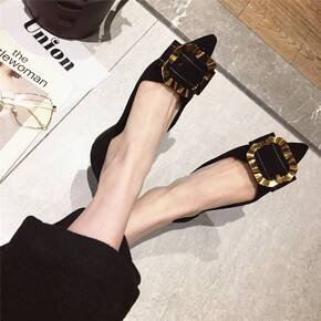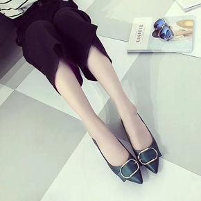 尖头平底单鞋女春秋2021新款欧洲站金属圆扣浅口女...