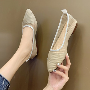 2021春夏季新款镂空平底透气休闲单鞋女韩版尖头浅...