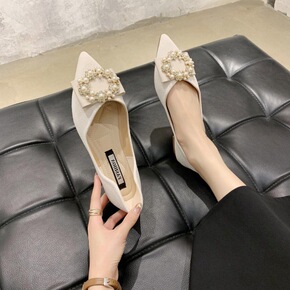 风口猪2021春新款尖头平底鞋平跟单鞋韩版百搭低跟...