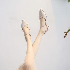 尖头单鞋女2021夏季新款浅口时尚百搭韩版网红金属...