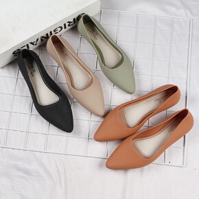 平底单鞋女2021新款春秋浅口粗跟尖头女鞋软皮软底...