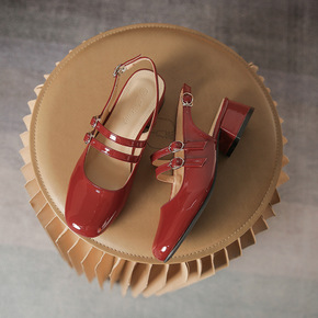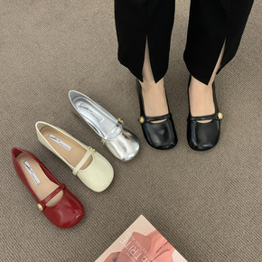 复古小金扣玛丽珍粗跟女鞋2022春夏新款百搭银色小...