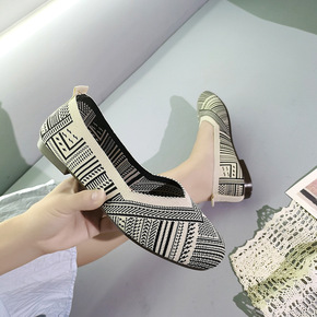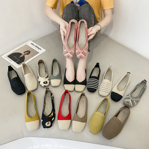 浅口飞织单鞋女2021春夏新款软底平底一脚蹬护士鞋...