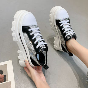 欧洲站女鞋2022新款百搭8cm增高厚底运动板鞋休...