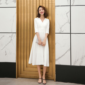 2022年白色礼服高级感婚礼年会平时聚会气质简约方...