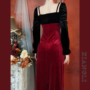2022新款气质法式红色连衣裙礼服裙年会赫本风显瘦...