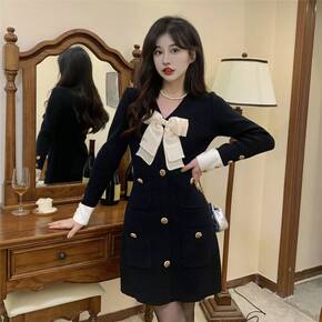 春季裙子初春季甜辣妹连衣裙女士小黑裙蝴蝶结法式设计...