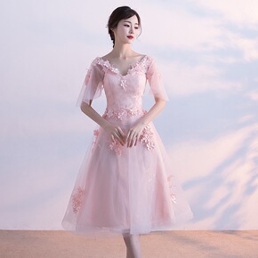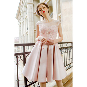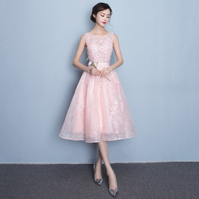 宴会小晚礼服裙女2021新款气质显瘦粉色蕾丝年会主...