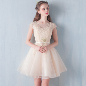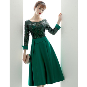 宴会小晚礼服女2021新款时尚蕾丝年会主持人晚宴小...