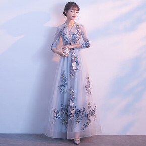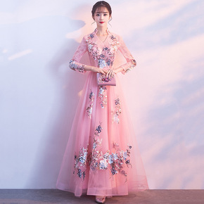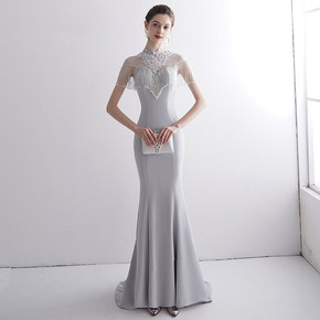 宴会晚礼服女2021新款秋冬季长款优雅气质年会主持...