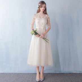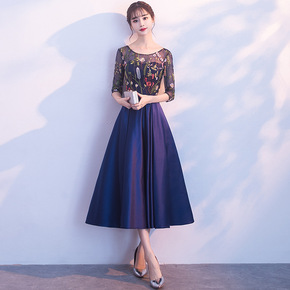 晚礼服女中长款蕾丝聚会显瘦年会晚宴会主持人小礼服裙...