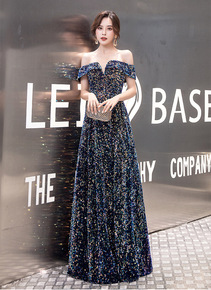 晚礼服女2020新款宴会高贵年会主持人性感气质优雅...