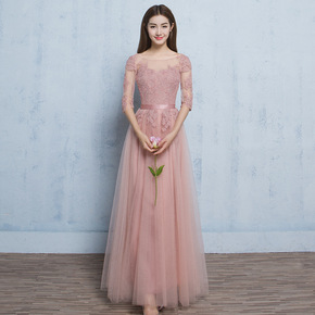 晚礼服女2021新款粉色蕾丝气质年会主持人宴会小礼...