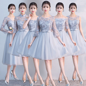 伴娘服女2021春款韩版灰色姐妹服修身显瘦粉色短款...