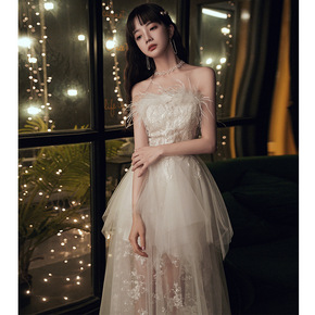 抹胸长款显瘦宴会礼服2021新款年会礼服主持人抹胸...