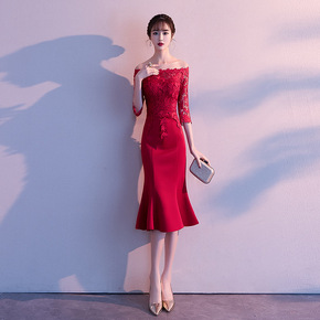 敬酒服夏季2021新款红色法式小礼服结婚订婚连衣裙...