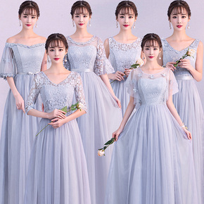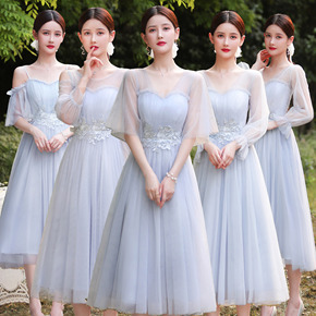 婚礼服灰色姐妹团伴娘服仙气质长款显瘦2020新款冬...