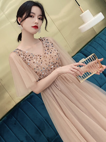 伴郎汉服姐妹团大码礼服伴娘礼服香槟色新款长款晚礼服...