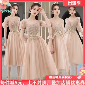 小个子香槟色伴娘小礼服平时可穿蕾丝2021新款姐妹...