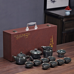 陶瓷柿柿如意带茶盘功夫茶具套装商务礼品送客户公司年...