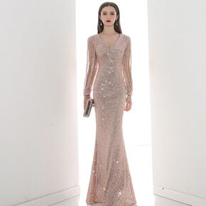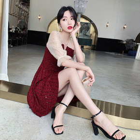 亮片礼服晚礼服裙女2021新款小个子高端气质主持人...