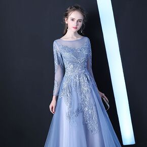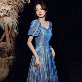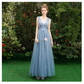 星空晚礼服新款蓝色长款亮片伴娘团气质年会姐妹礼服主...